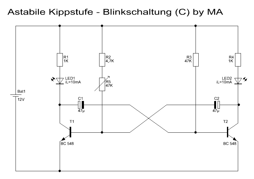Aus dem Anfängerbereich stelle ich eine astabile Kippstufe und ein
